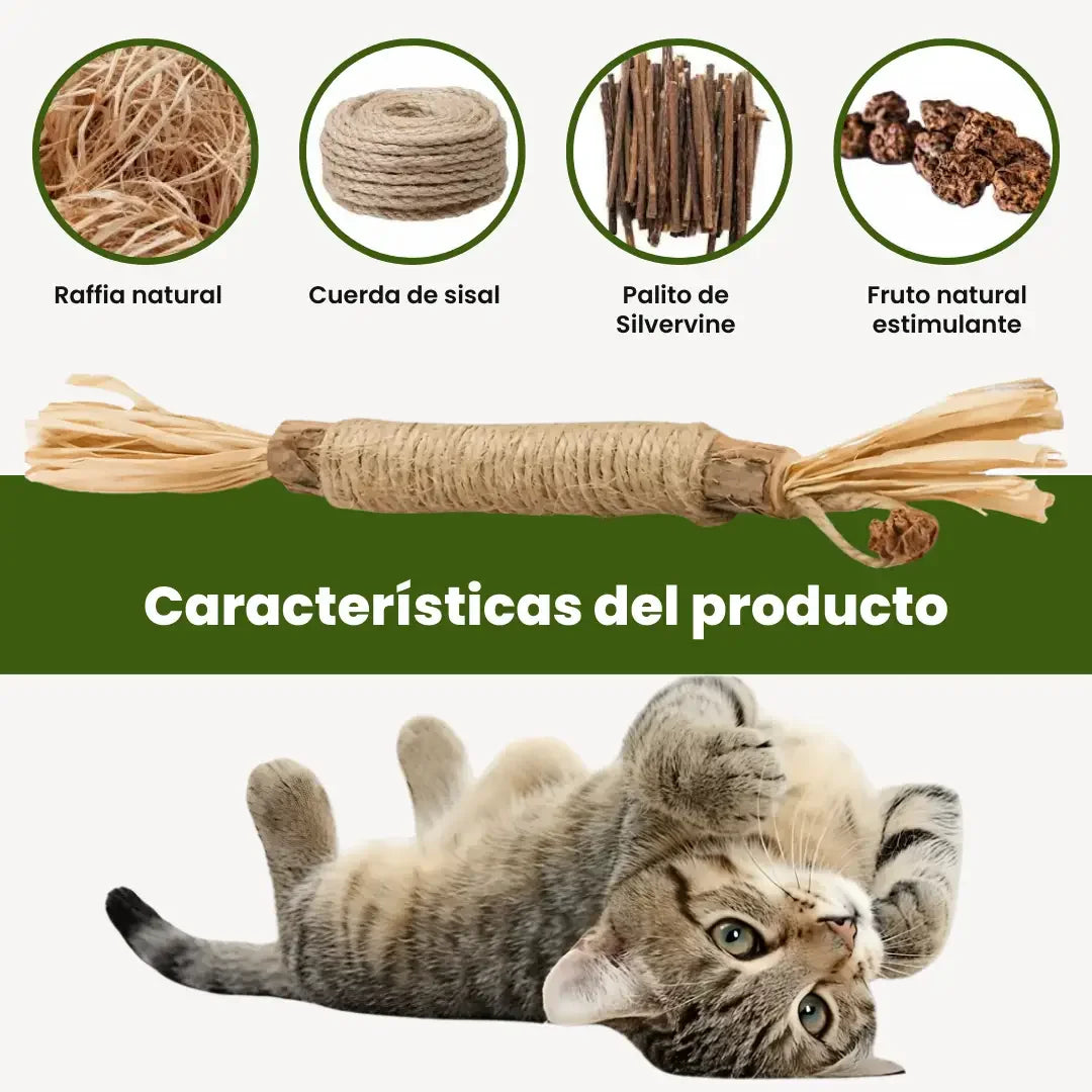 Nuestro producto entretiene, reduce el estrés y cuida los dientes de tu gato de forma natural.